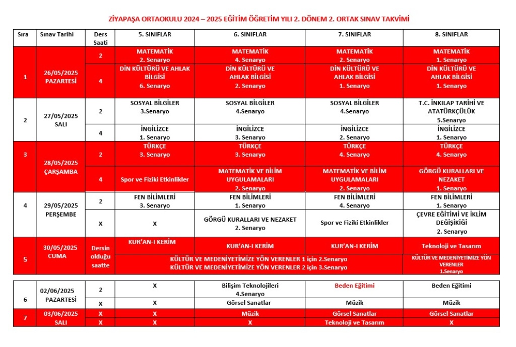 SINAV TAKVİMİMİZ